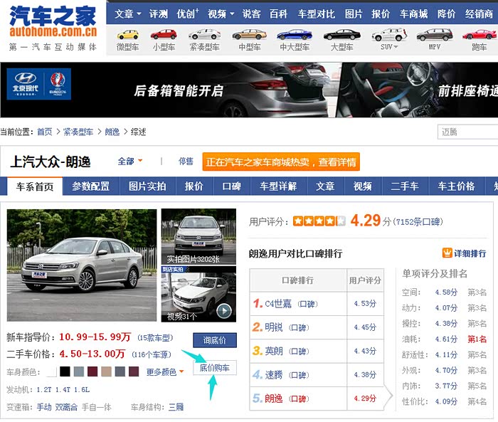 1.先在电脑上注册了汽车之家的账号,并在汽车之家找到朗逸页面,选择底价购车