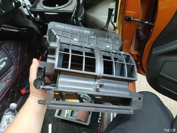 拆出这个只需要扭4颗螺丝,比拆空调箱总成要快,没记录到螺丝位置,很可惜,不过我还记得的。