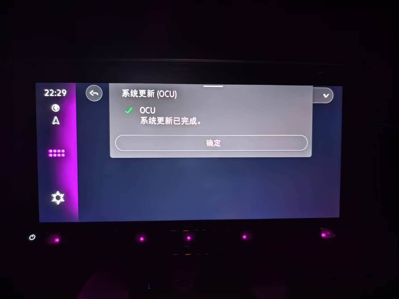 6. 重启车辆:更新安装完成后,车机系统会弹出明确的重启提示,通常显示“更新已完成,请重启车辆使设置生效”。此时需严格按照系统指引操作:先将车辆电源完全关闭(若车辆处于启动状态,需先熄火),确保车机屏幕彻底黑屏,等待30秒左右让系统完成收尾处理。随后重新启动车辆,打开点火开关或启动发动机,车机将进入重启加载流程,屏幕可能会显示品牌logo或“系统启动中”的提示。