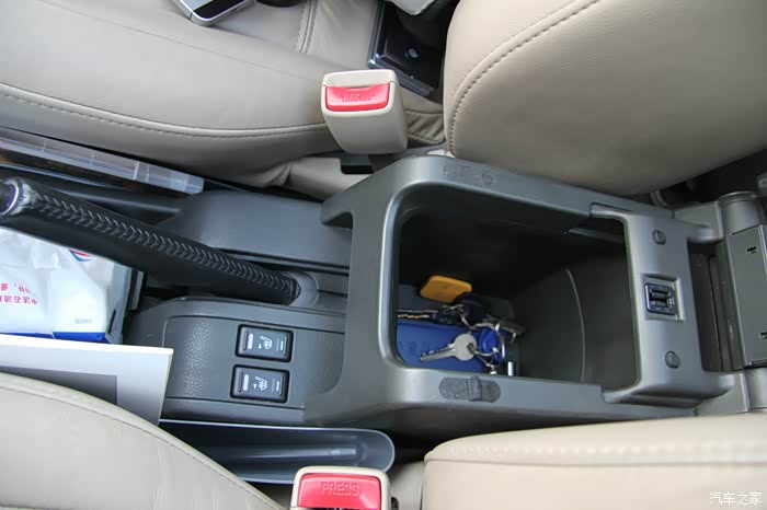 中控中间的储物格,本人放电梯卡,家钥匙。