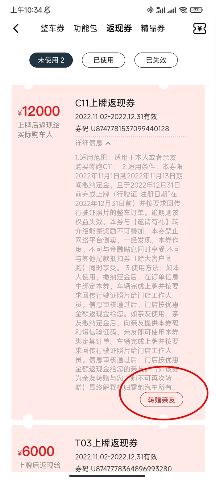 昨天得知,所有老车主手上都有两张券,其中一张是零跑C11的12000元的购车优惠券。🚙