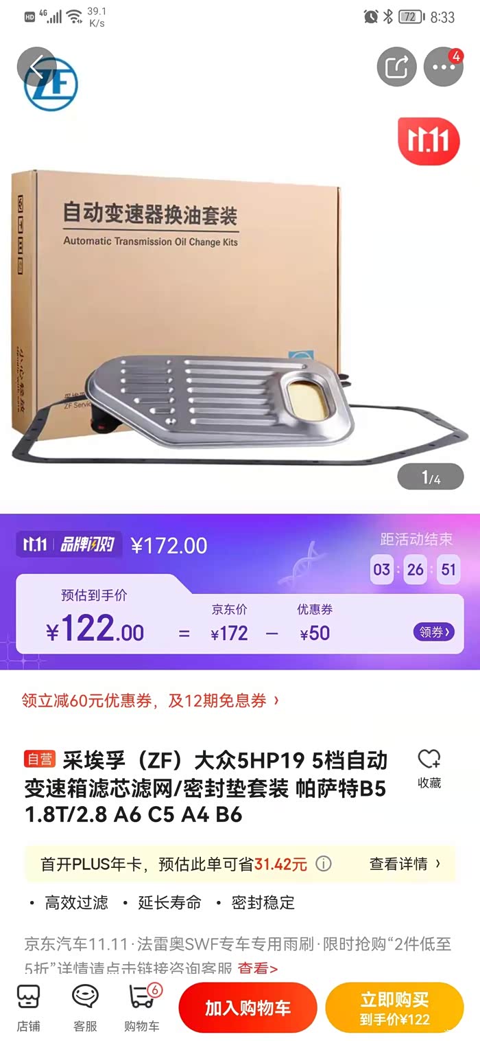 变速箱油:ZF 5档变速箱油, 变速箱滤网也是一样的,987.1变速箱型号:ZF 5HP19