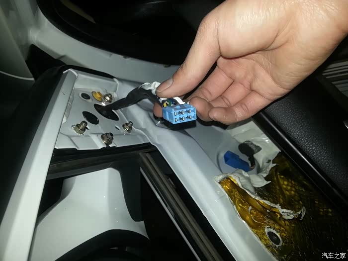 换音响换的,把止震板都撕开了,蓝色的就是后视镜控制线,h6后视镜一种5线的,一种6线的,带加热的就是6线,不带的就是5线的,买的时候要注意