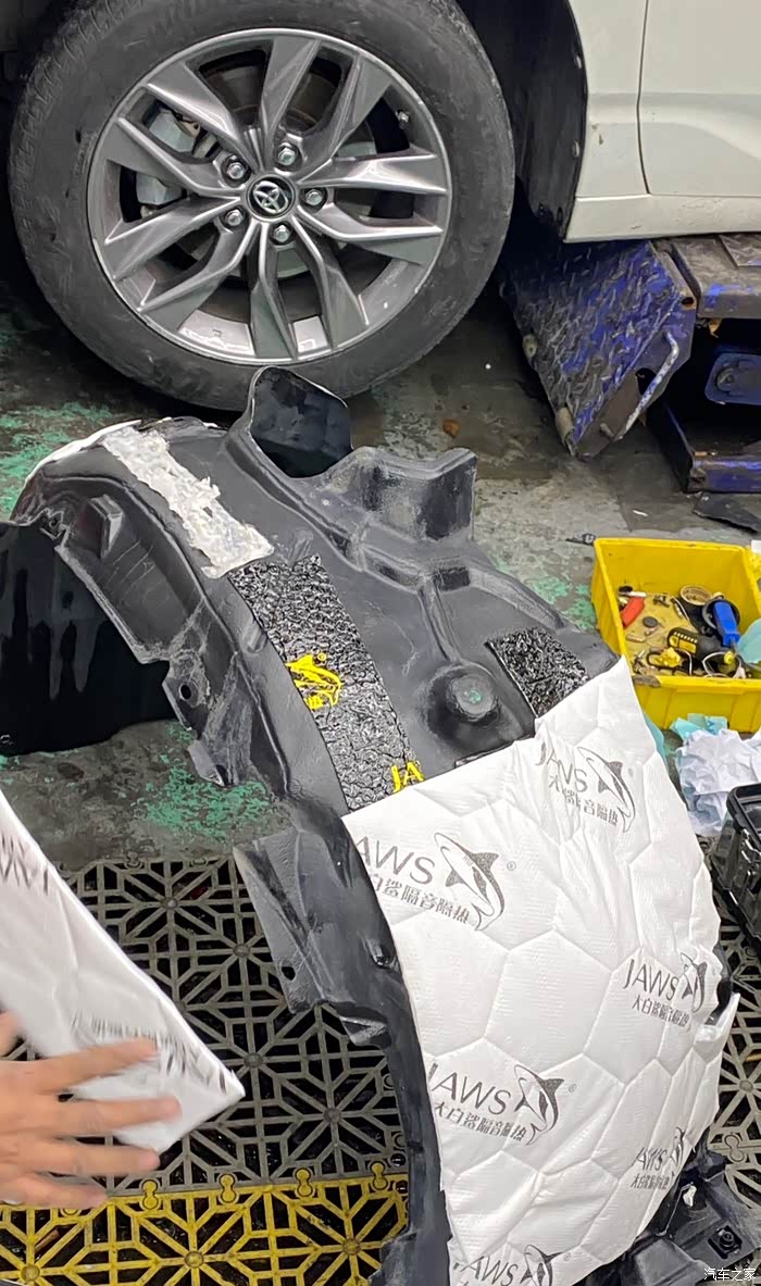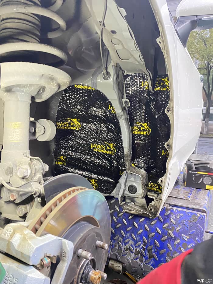 第二次再去升级,加装前轮殻内腔隔音以及主副驾驶踏板位隔音。