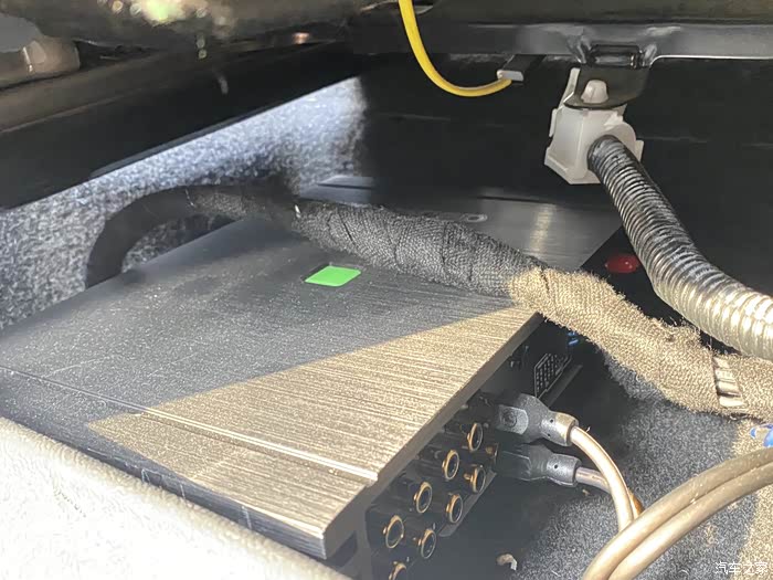 第三次再去改装是因为前门喇叭现在原车主机力不从心,就去汽配城找了一家生意特别好的音响改装店,加装了一个DSP功放,主副驾驶做的三分频