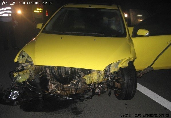 福克斯底盘的确是不错,160KM/H撞护栏没有发生翻滚,如果发生了翻滚怎么着也是非死即伤,运气好的在医院住个把月。车身双柱没有变形,驾驶室里比较完整,挡风玻璃和侧门玻璃都完好无缺,四个车门只有后面一个门开不了,其他的都能打开,尾箱打不开。