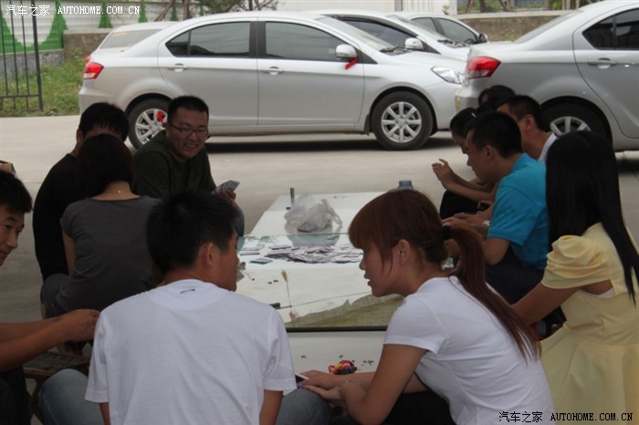 在停车场集合照相