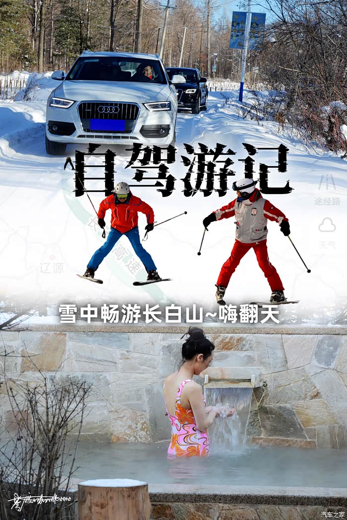 【用车感受】这次出行的两台车是奥迪的Q3 35TFSI和Q5 40TFSI,都带奥迪的quattro四驱系统,这两台车都更换了雪地胎,与功能强大的四驱系统配合下应对路面打滑还是比较轻松的。不过我开的这台Q3中央差速器是多片离合式的,和Q5的托森中央差速还是有差距的,另外在底盘悬架方面Q3也要逊色一些。这两台车都是搭载了2.0T涡轮增压发动机,动力相差也不小,好在Q3车体相对小巧,180马力应对1.6吨的车辆倒也比较轻松,车辆加速、巡航时动力绝对够用。Q3的7速湿式双离合变速箱换挡速度比较快,响应性和逻辑都是我非常熟悉的感觉。在积雪路面和干燥路面上驾车,对于车速的控制和油门刹车踏板的踩踏力度要有充分的预判性,电子系统再强大,一旦突破物理极限也会失控,所以还是那句话:行车安全第一!从长春到长白山一路高速畅通,路况好、车辆少,以110km/h左右的车速巡航时,油耗在7.2L/100km左右,表现还是蛮不错的。Q3车身比较紧凑,车内空间可比不上Q5,坐4个成年人跑高速稍显局促,还好4个多小时的车程不会让人感觉拥挤和困乏。这次自驾游的准备工作还是要想的细致周到的,虽说长白山室外温度并不太低,但御寒保暖服要准备到位;滑雪在室外时间较长,暖宝贴还是要准备一些的;天气寒冷喝矿泉水肯定不行,保温杯需要每人带一个;滑雪服和雪具不需要准备,在滑雪场可以租到自己需要的各种装备;泳衣需要提前备好,泡温泉的时候用;另外手套、帽子、晕车药、腹泻药等也需要备上。