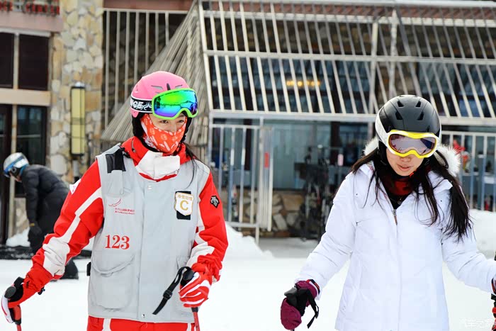第二天一早起来吃了丰盛的早餐就去滑雪,酒店提供2大1小的滑雪门票,头盔、雪板等雪具根据自己的要求领取,雪服和雪镜是另外收费的,我算是滑雪的菜鸟一枚,领的是双板。这里还提供初级、中级和高级一对一助理的滑雪教练,价格可不便宜,实习助理是260元/两小时、430元/四小时、560元/天;初级助理是480元/两小时、760元/四小时、 1000元/天;中级助理是780元/两小时、1090元/四小时、1440元/天;高级助理是920元/两小时、1420元/四小时、1880元/天。算了吧还是,自己在旁边悄悄白嫖蹭课吧,哈哈。专业雪道是给专业选手准备的,菜鸟还是别冒险行事,初级雪道上配备了魔毯,上下来回还是蛮方便的。虽然我是个内蒙人,滑雪技术比较糟糕,仅限于双板内八字刹车阶段。