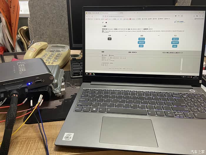 两个多小时,下午两点弄的,快五点应该是程序刷好了,只看见师傅点来点去,但看不懂什么头绪。后面那台5系是同事新提的,可惜问了师傅,新款暂时刷不了。