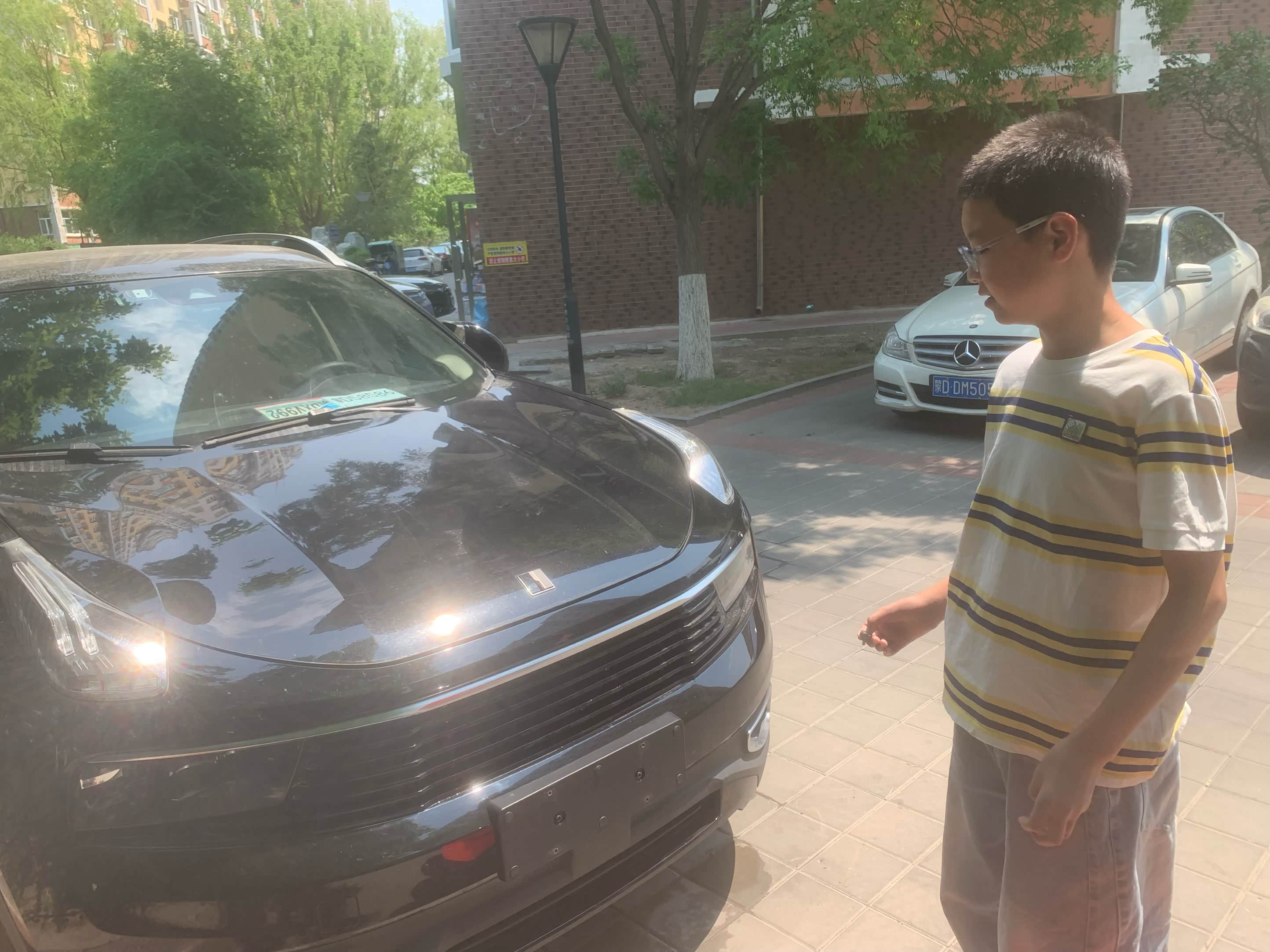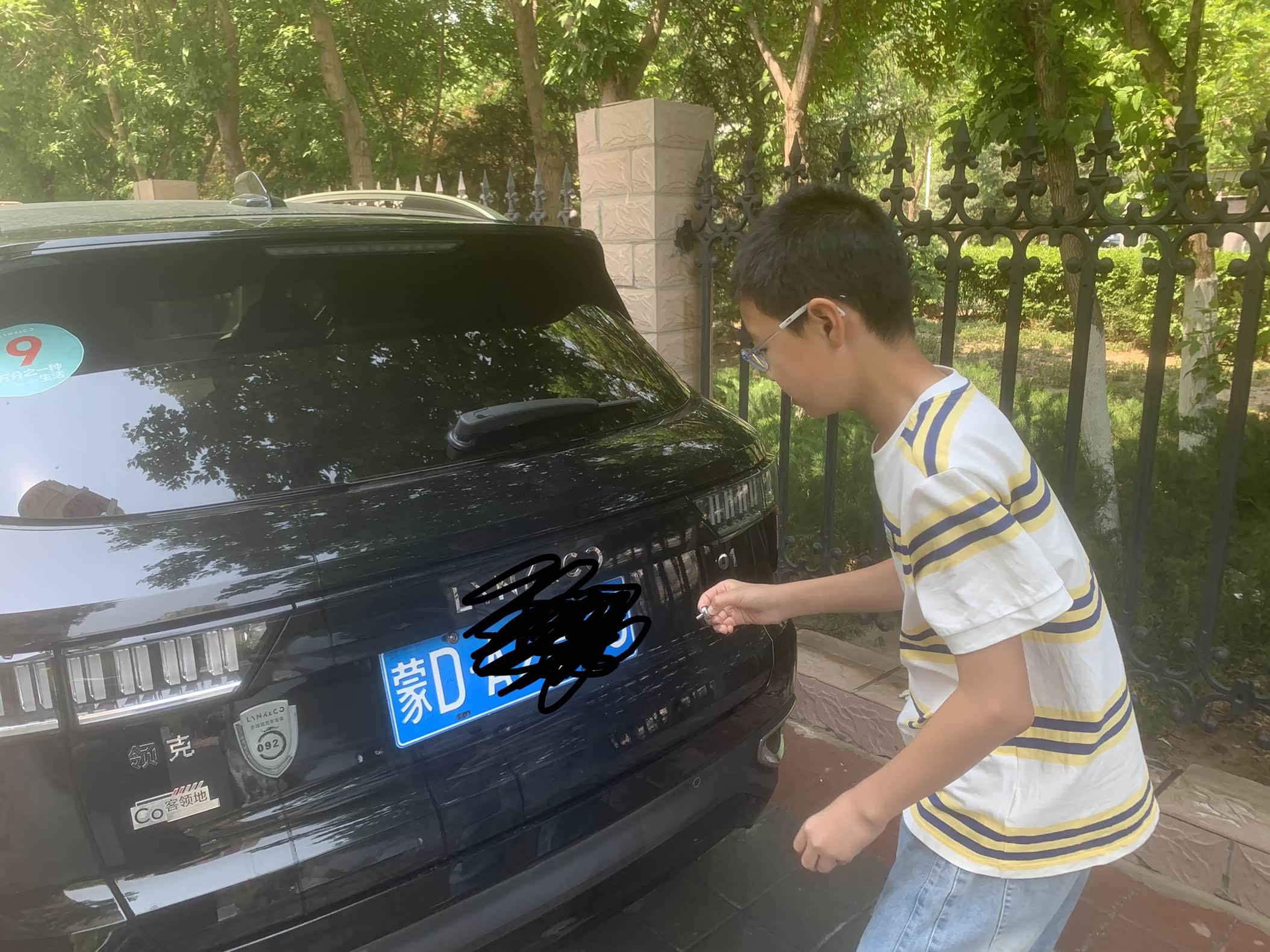 我儿子在给我的领克01上牌