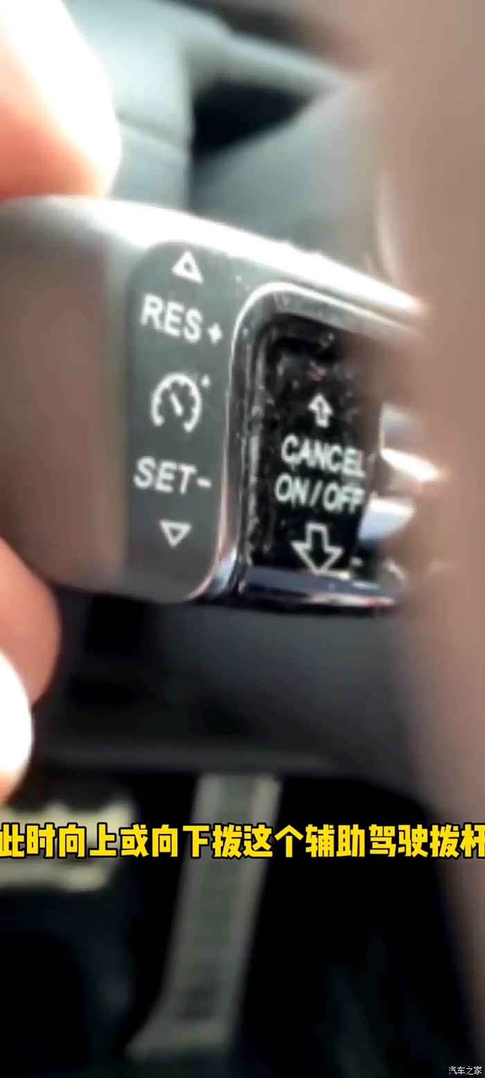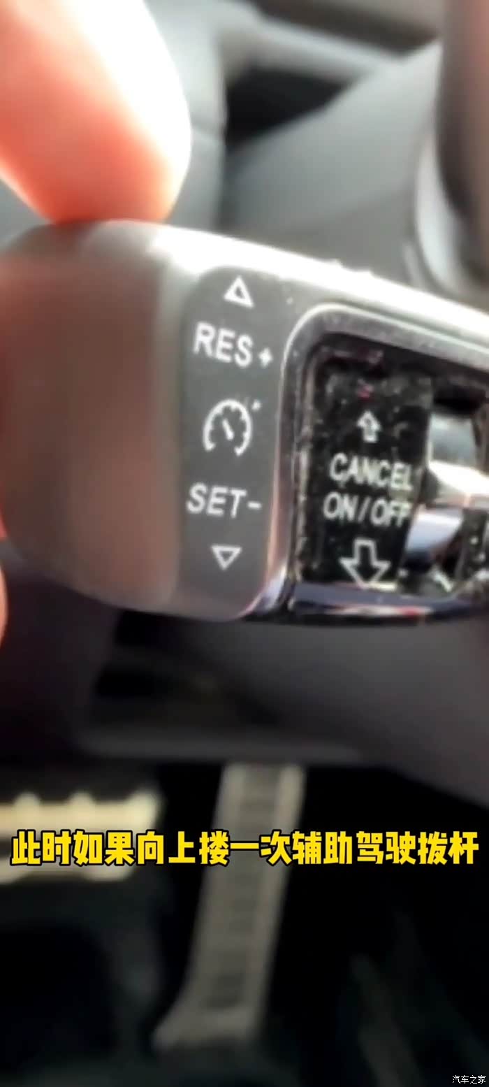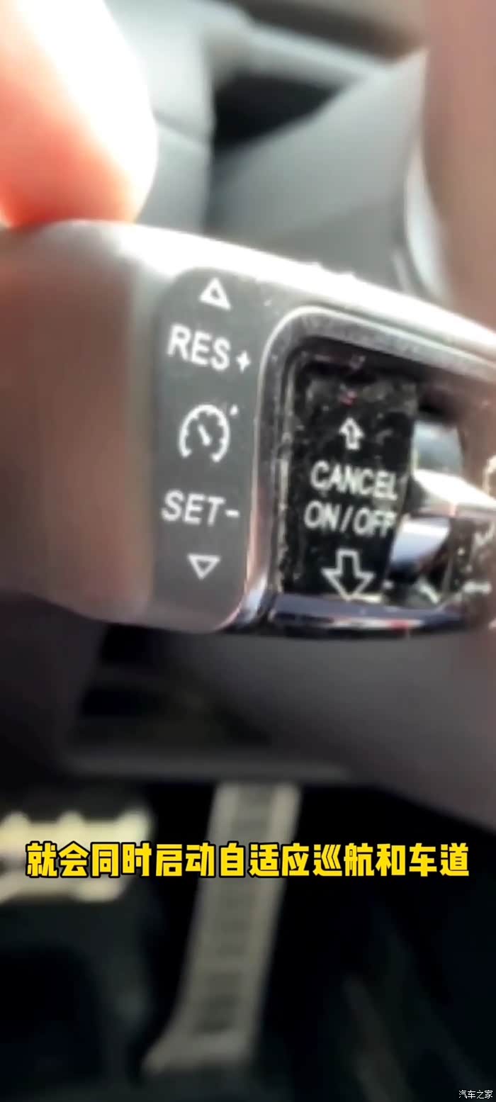 ▲此时你把方向盘左侧下部的辅助驾驶拨杆向上拨一次,就会启动自适应巡航。