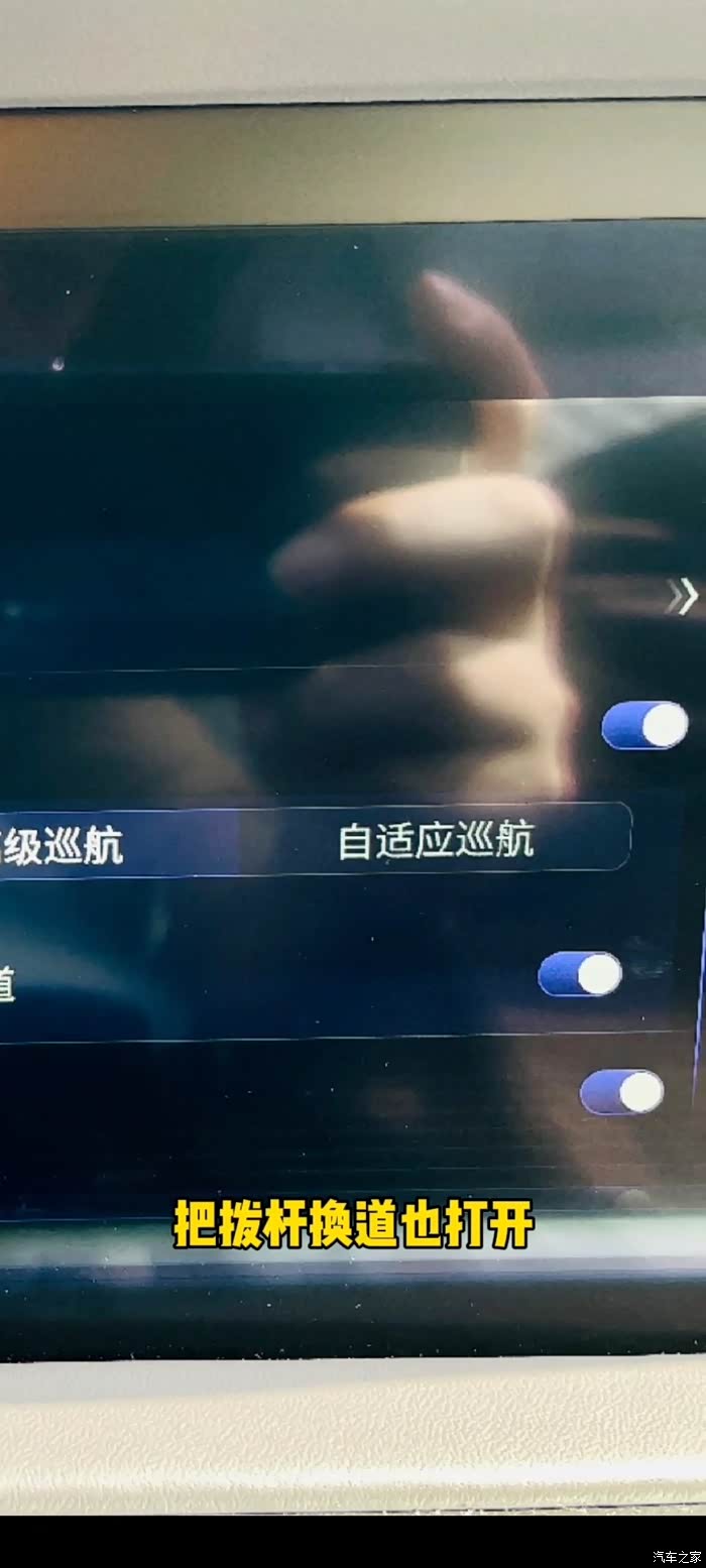 ▲在中控屏幕的车辆设置里面,把高级巡航打开。如果你是带副驾驶屏幕的高配车型,记得把拨杆换道也打开。