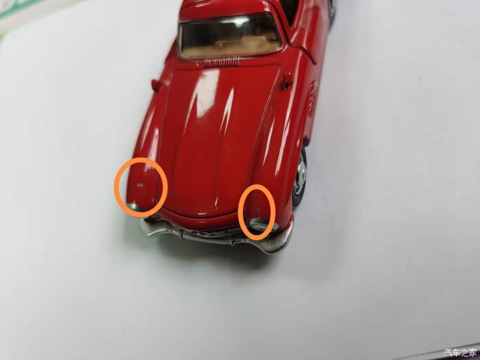 糟点二,仔细观察发现前面有车漆瑕疵,必定是库存老货,同时还是散装也就忍了