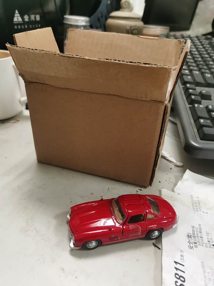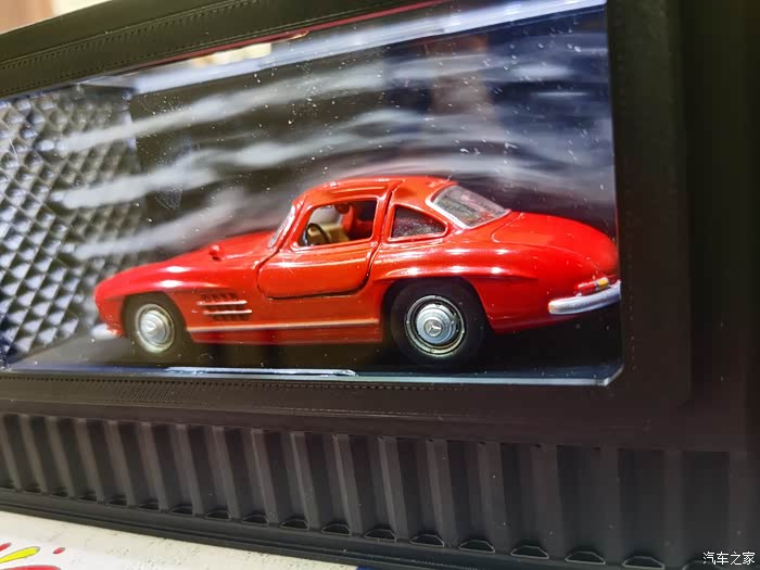 打开包裹拿出小车,由于是库存老货,所以没有展示台及展示罩,好在车门用胶贴封着