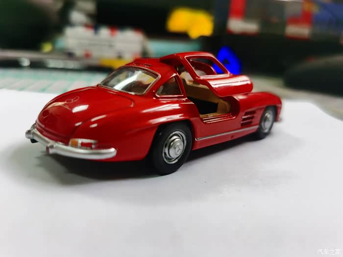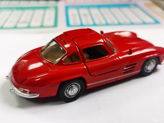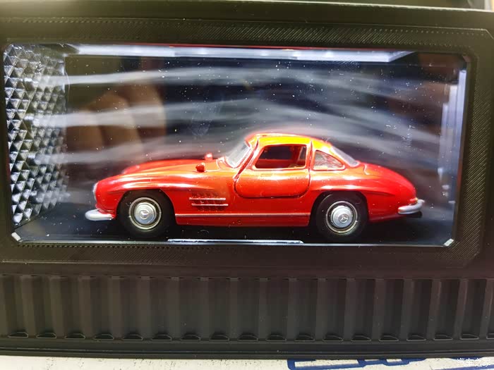最近收了一个散装老货,诺威尔家出的1:43比例的1954年款梅奔300SL,实车是战后梅赛德斯-奔驰品牌推出的运动赛车车型,也算是对于老银箭赛车的基因延续,早在1954年在纽约国际赛车展亮相,并首次采用了隐藏式门把手设计以降低风阻 ,同时也是历史上第一款采用“鸥翼车门”设计的量产跑车,该车搭载215马力六缸发动机,配备燃油直接喷射系统,百公里油耗15公升。车身采用管状框架结构并运用铝质材料减轻重量。量产版于1954年8月在德国辛德芬根工厂投产,标准版重1295千克,可选配轻型合金车身减少80千克重量。内饰提供织物座套及多色金属漆选项,驾驶舱遵循人体工学设计,配备可调节方向柱和优化踏板布局。