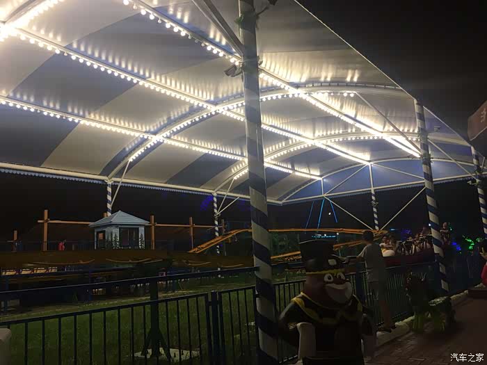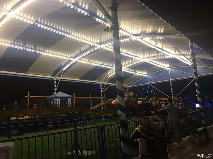 这是叫丛林飞龙过山车的夜景,我们当时都做好了,做第二排,忽然气压机漏气了。。。维修了十多分钟后宣布当天停业检修,,我们就没玩成,赔我钱,就想来玩这个的。。。。