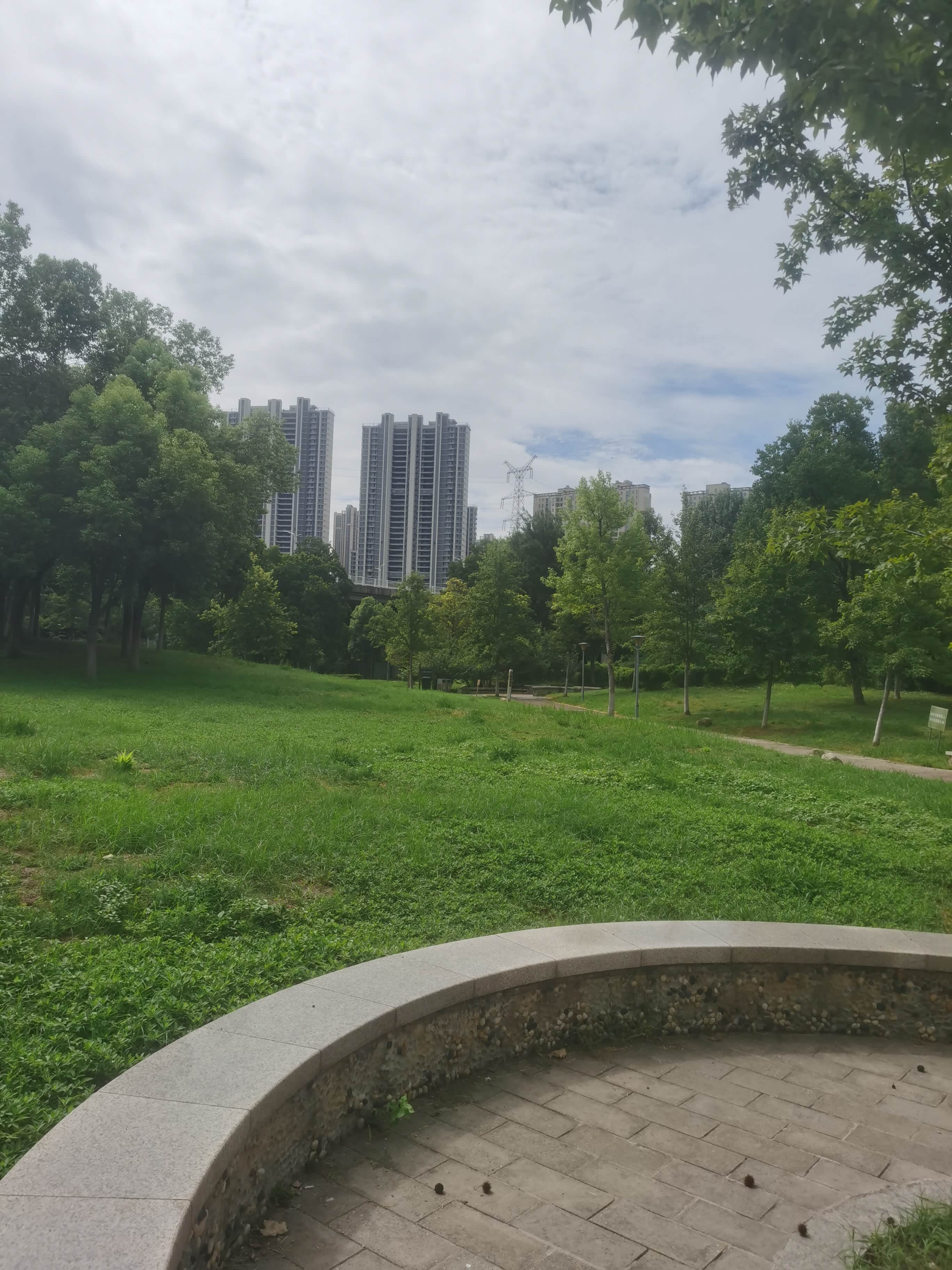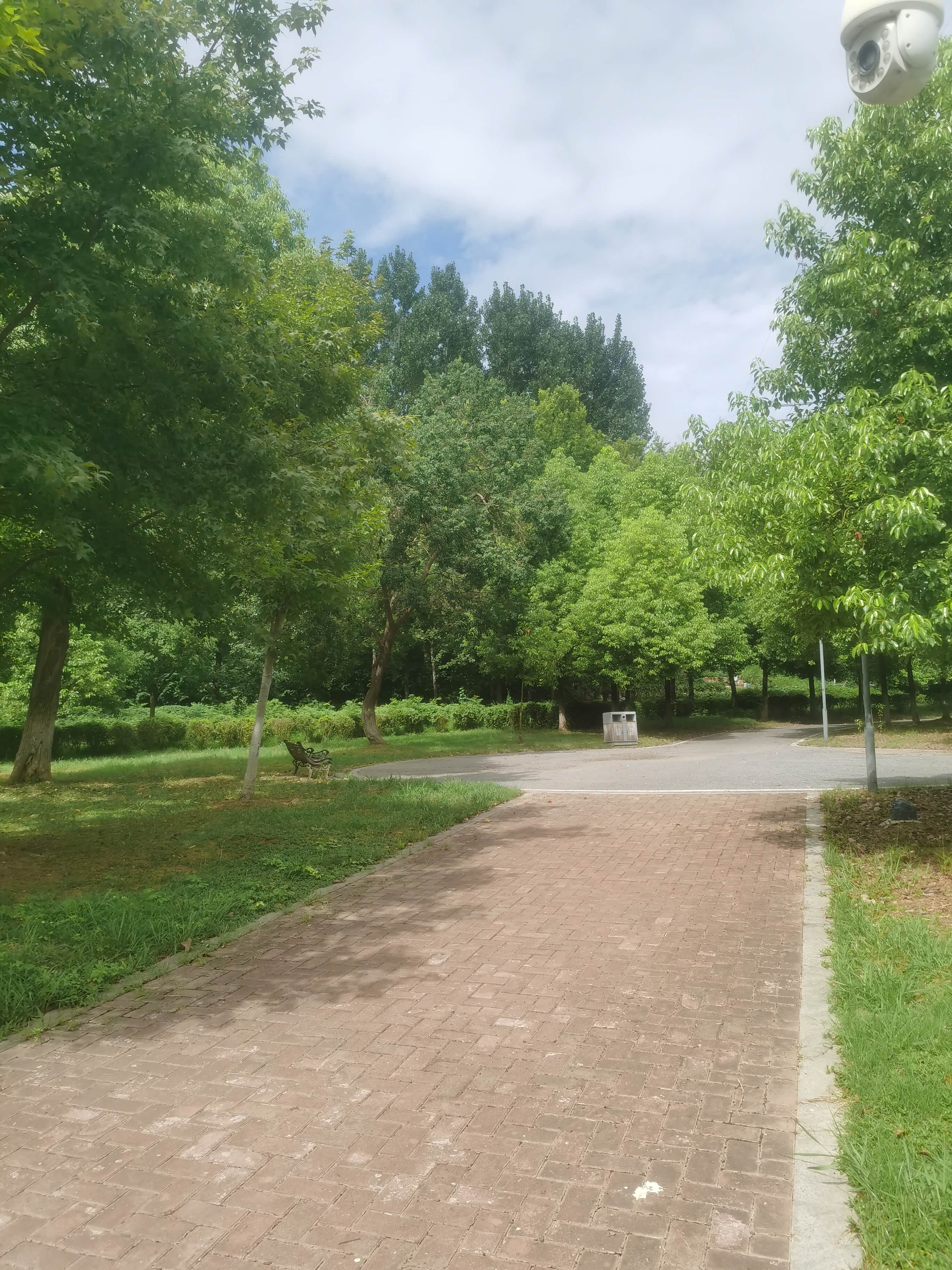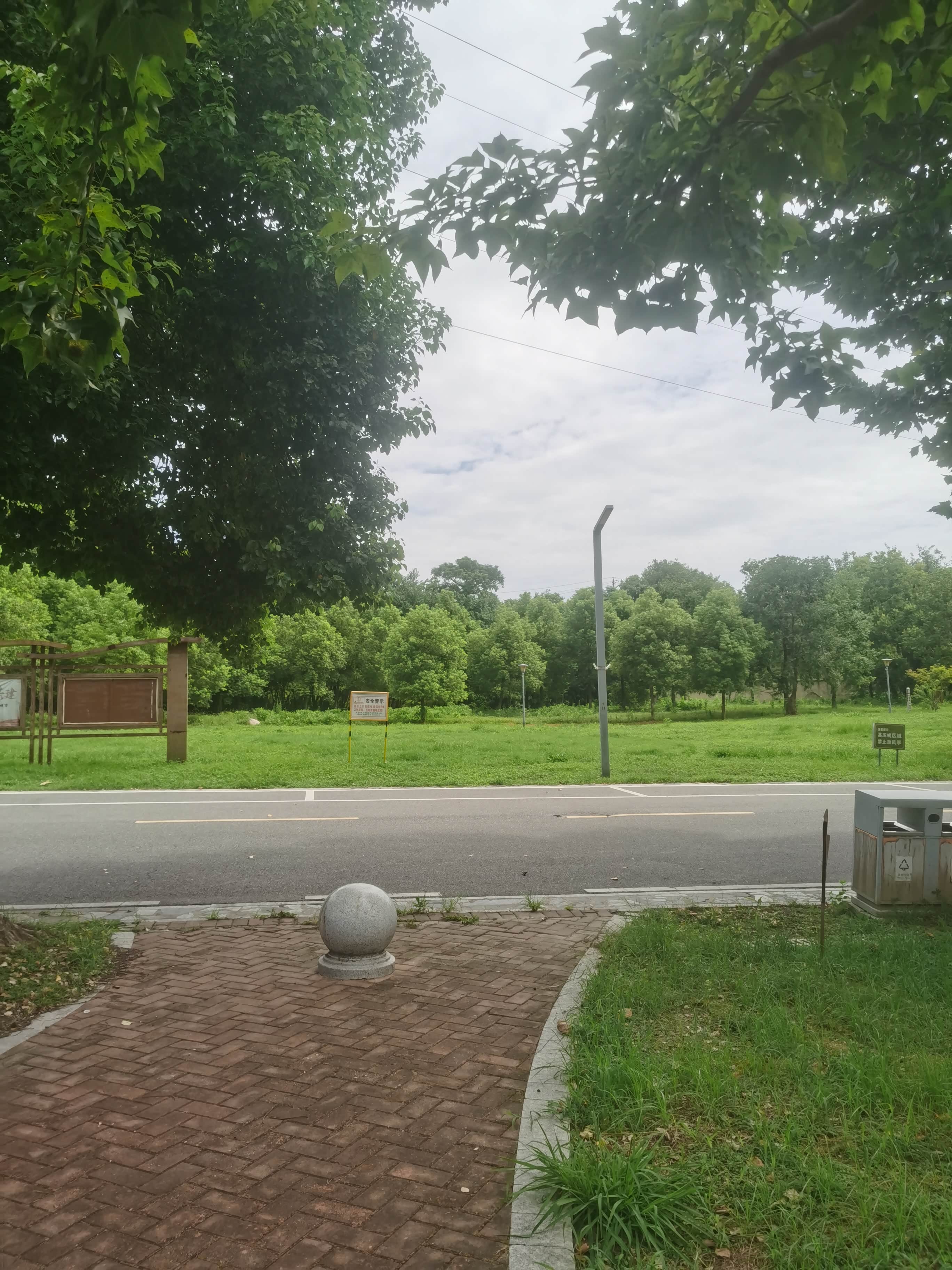 沿着石板路慢慢开,两边的灌木丛、长椅、路灯,营造出一种超治愈的氛围,工作的压力瞬间被清空。