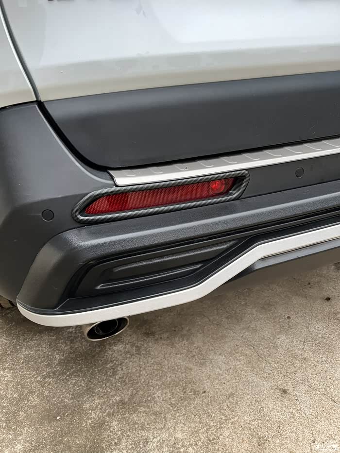 碳纤维纹雾灯框三件套;为了让RAV菱角分明的前脸看上去更宽,更立体,我又在网上找到了这款碳纤维纹雾灯框三件套,可以增加车头的宽度,站在正前方平行看上去有点宽体的意思了。