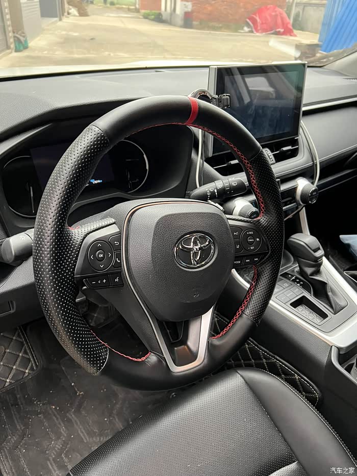 手缝真皮方向盘套;21款RAV4风尚版的方向盘是唐塑材料的,摸上去手感不是很好,通过加装真皮方向盘套开车抓方向盘的手感提升不是一点点,真皮看上去也很有质感又可以提升整车的内饰档次。