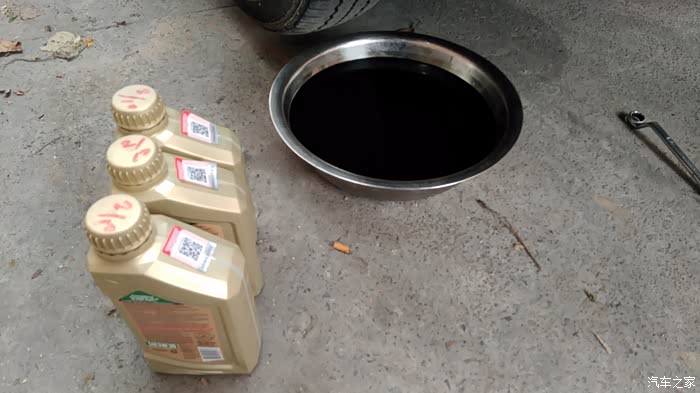 这是放出来的CVT旧油很干净稍微有点黑,这些量是0·9升,未拆溢流管,溢流管之上的油。以为溢流管上没多少油瓶子准备的小了,盆子里又装了点。