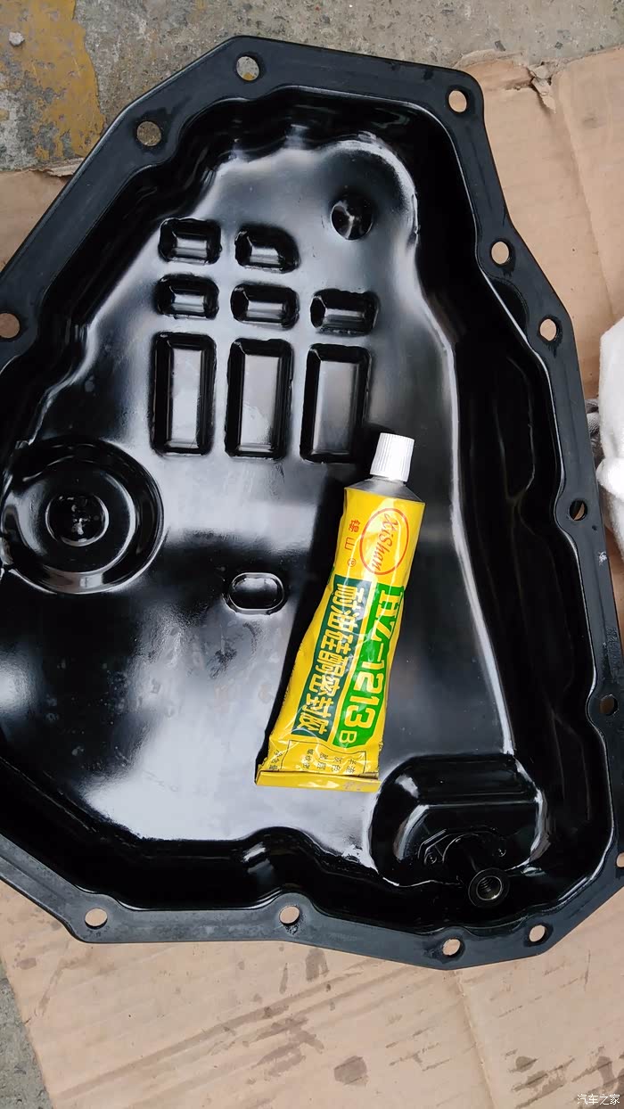 现在的耐油硅酮密封胶非常好用,油底壳旧床垫不管好坏都可以密封住,仔细涂抹薄薄一层就可以,多了也会挤出来到变速箱里面,这活需要比女人更加耐心仔细。装好油底壳然后溢流管装上闷头焖好。