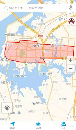 主城区东起白石岭路,西至洞庭北路,北起站前路,南至求索路,所围成的区域范围内快速路和主干道全天禁行摩托车通行,同时部分重要次干道路段(岳阳楼、南湖风景区附近、各商业中心周围,车站和广场附近)禁止摩托车通行,该区域外围的道路对摩托车适当放宽通行。