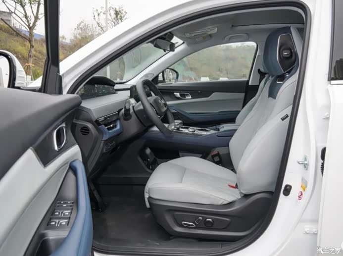 从内饰方面对比,新车整体的布局很合理,且设计极具视觉冲击力;为了体现出混动版本先天优势,新车优化了内饰配色,变成森海蓝和灰白色的比照方案。当然,新车的内饰用料非常厚道,符合当下主流审美观念。值得一提的是,在中控设计与仪表台延续燃油车分屏设计,彰显豪华层次感。