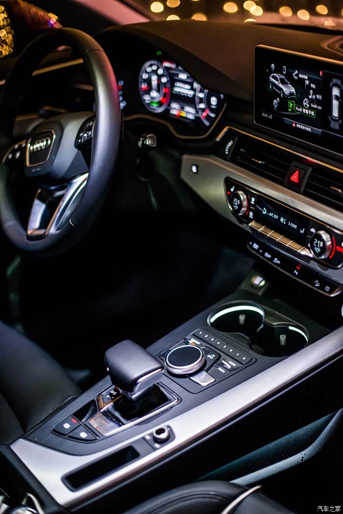 先说下内饰方面,基本上应该说和现款的 A4L 没什么区别吧。方向盘我觉得还是有点细,要是能换一个粗一点的就好了,而且貌似比老款的方向盘要大一圈?可能是因为手里这台老款用的是 S 的方向盘,所以错觉了吧。。。