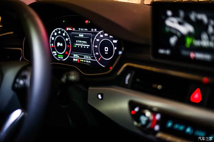 全液晶的仪表盘,相对的我更喜欢现款 A6的仪表盘,当然这个也很喜欢,但是还是更喜欢有实体指针的。