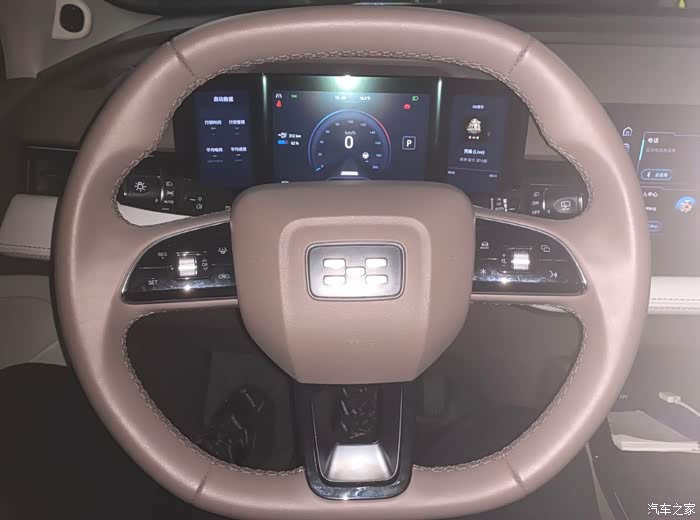 仪表盘还是三个小方块合成体的,方向盘上下平底,非常有运动感