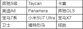 豪车列表: (车型排名不分先后)