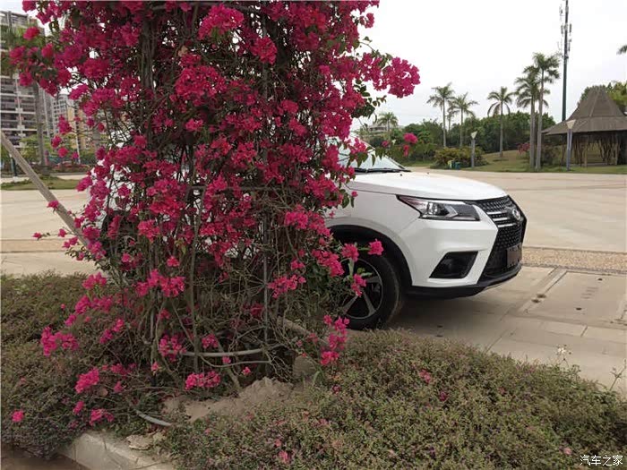 这张藏在花簇后的大白, 宛如犹抱琵琶半遮面的美人。饱满的车屁股,后脚水平比较高,往前呈下坡趋势,比有的车头重脚轻要好看的多。前脸是幻速S系招牌脸型,X型满天星车头,大车灯这样侧面看格外的好看,灯罩的线条很奔放,个性。