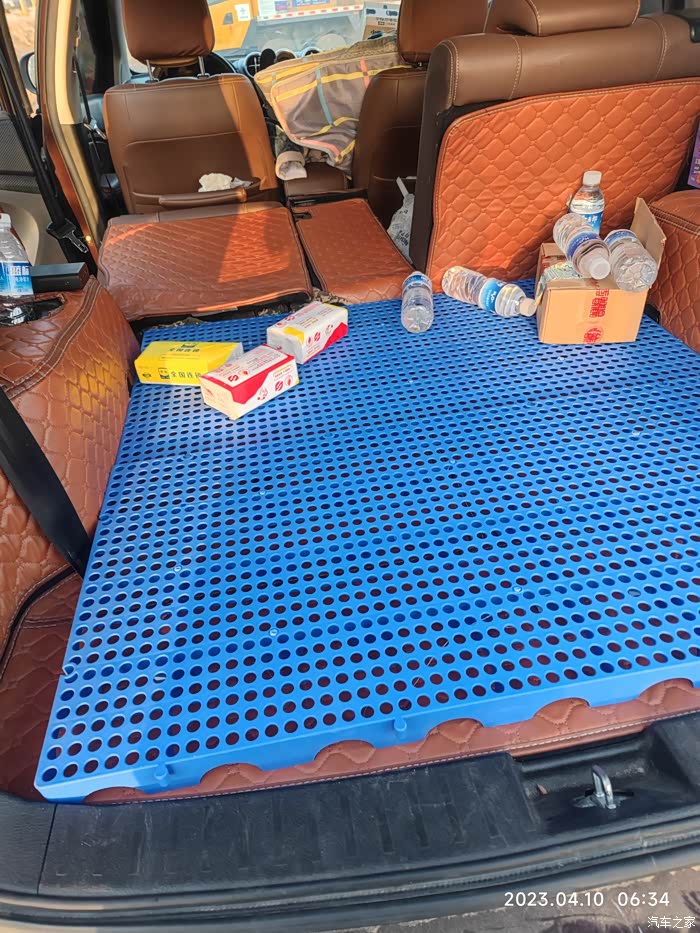 一开始考虑的是充气床垫。仔细一想充气床垫打上气之后,这个高度离车顶这空间又小了,所以思来想去,直接两块板搞定。在某宝上面,60多块钱买了两块板。经济又实惠。考虑到第三排有的时候还要使用所以没有上1米╳1米的,所以上了两块100×50的,完美使用。