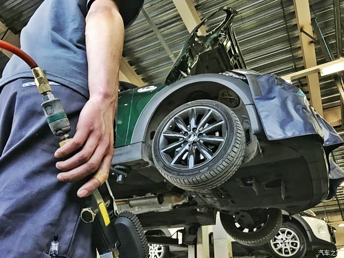 一直在地面奔跑的MINI被抬了起来,说实话我还很少看看你的下面。。。