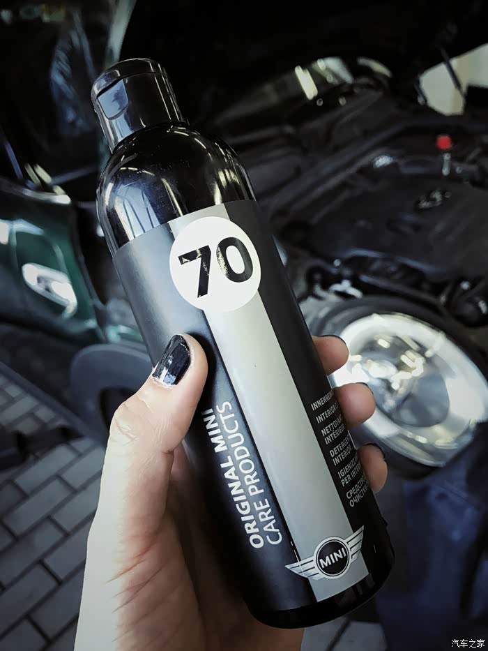 机油机滤更换完毕,接下来给小绿用个高大上的产品,MINI原厂汽车消毒剂(德国制造),这个包含在从MINI天猫旗舰店购买的99元空调及全车消毒杀菌服务里。