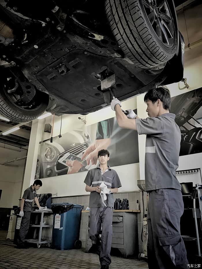 技师在检查底盘,我在拍帅气的小鲜肉。。。。。