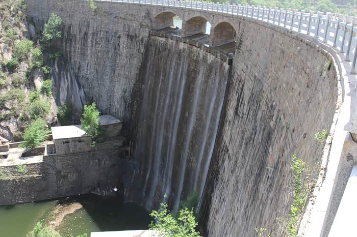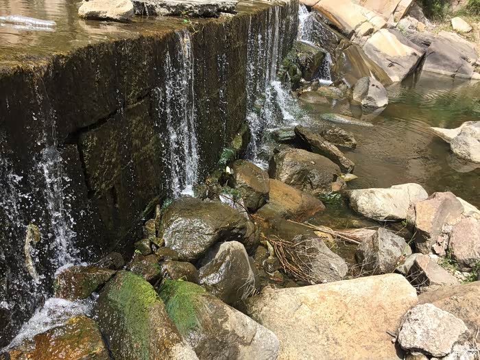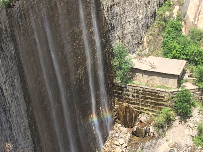 水库大坝,黄巢水流倾泄而下,在水流的最下方,阳光折射出七彩的光晕,相机根本拍不出她的光彩。