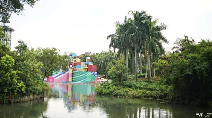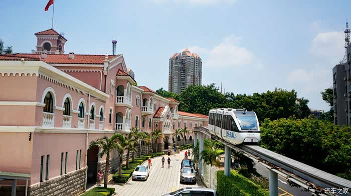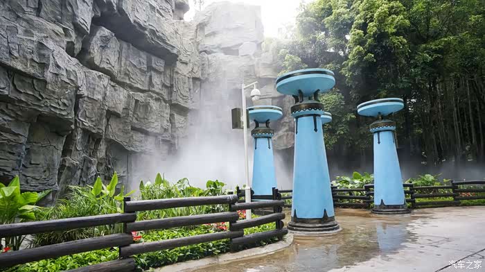 正在犯天秤病呢,头顶一列小火车嗡嗡得驶来。这个有意思,跑过去打听了一下,说是环线观光车。也好,站得高看得远嘛,先看看园区的情况,假如游玩项目一般咱就撤,如果还不错, 一会下来后排队的人也少了,再进不迟。