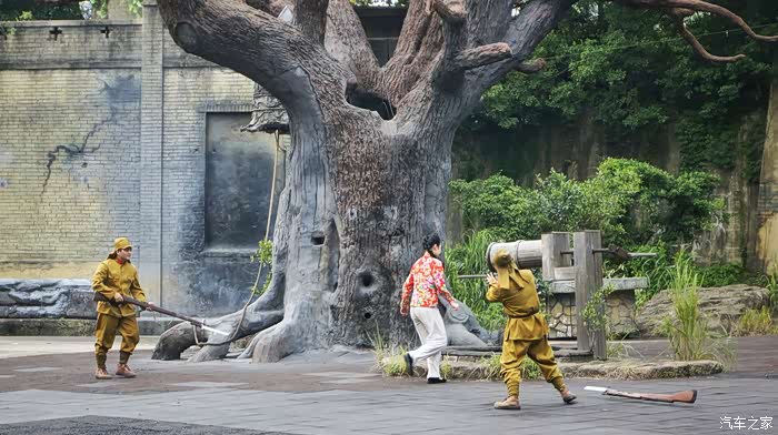 在这个表演里面,观众也是可以被邀请穿上剧组衣服一同去体验下剧情的紧张和刺激。图中右边的那姑娘就是。