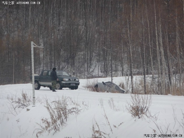 第二天行程根河到漠河到北极村全程很巧的是跟第一天一样也是425公里。不过这425公里可不同上一天。早上在根河一假日酒店起床后,发现老天爷爷真为我们这次自驾游作美下了一场入冬以来的最大一场雪,才有了我们后来一路的美丽雪景可拍,否者此次北极村旅行报废!!!在此谢谢老天爷爷跟我们开个玩笑,同时也考验我们雪地驾驶技巧!上图了。