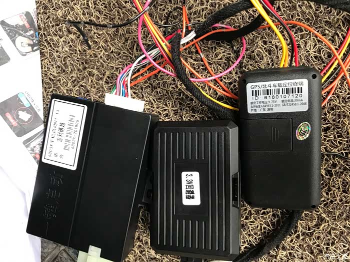 后面装后排小窗口,然后一键启动控制盒,车载定位终端,回避器固定好