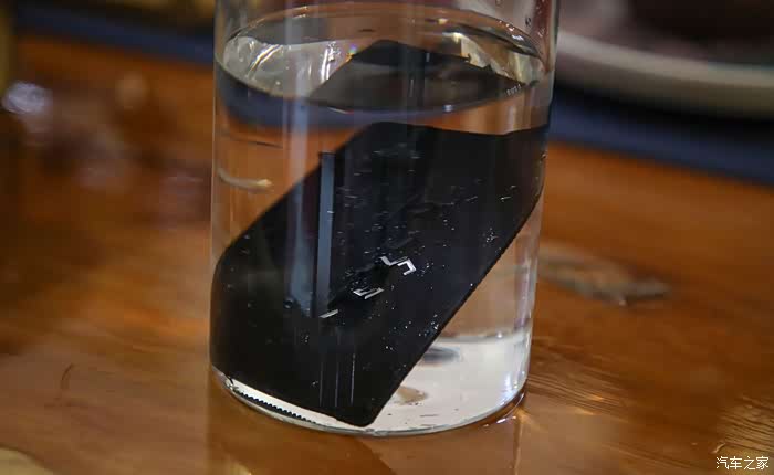倒入超过卡片高度的清洗液浸泡,操作时候最好带上手套。特斯拉的英文字母已经开始脱落了。