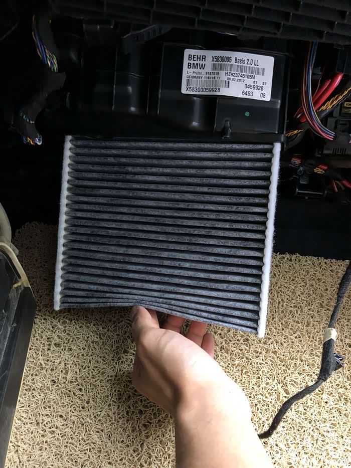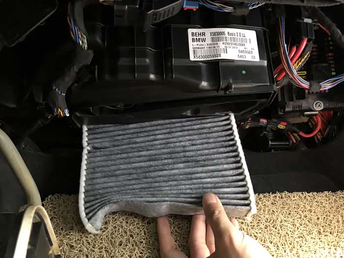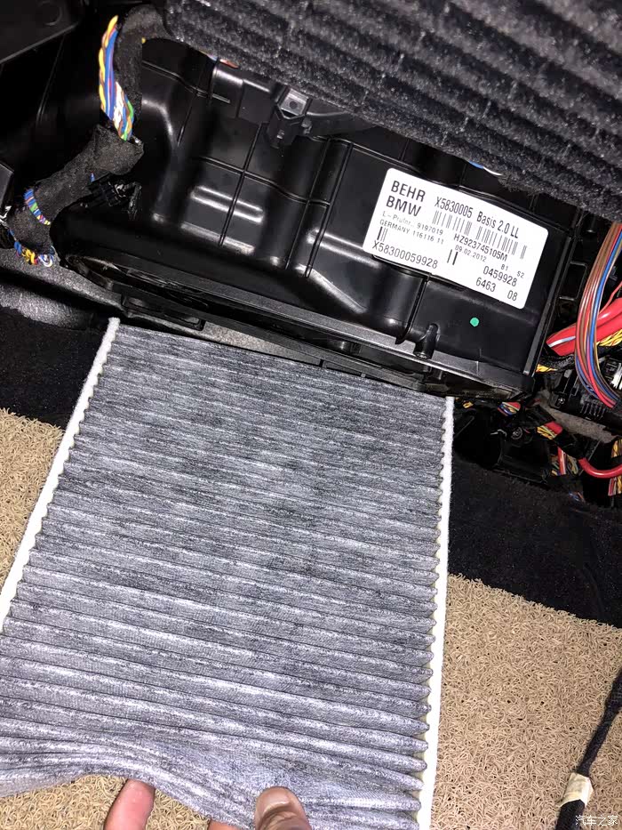 大家好,我是西瓜,很高兴在这里与大家分享diy手把手教学的更换空调滤芯的的流程帖子,谢谢大家!也很高兴能够参加网站专门推出来的“【人·车·生活】秀出我的用车态度,iPhone Xs等豪礼赢回家! ”的好的活动。我的宝马5系是底牌代号为F18的宝马5系也就是上一代宝马5系,其实空气的滤芯非常好更换,在发动机舱内,拆下一个支撑杆,在用T20的螺丝刀下两颗螺丝就够了,但是空调滤芯就非常难更换,4S店里面的价格在999原来应该是1199,后来下调了价格,确实难更换在手套箱的下方还是两组的滤芯组合。如果自己要更换的话,需要T20的螺丝刀,拆中控的一个侧板,手套箱下方整体更换下来,灯泡线路放下来,然后拆滤芯的盒子,(记住了一共4个螺丝千万不要忘记白色气管的后方的),所有配件用巧劲,千万不要使劲扯使劲拽,会搞坏的。