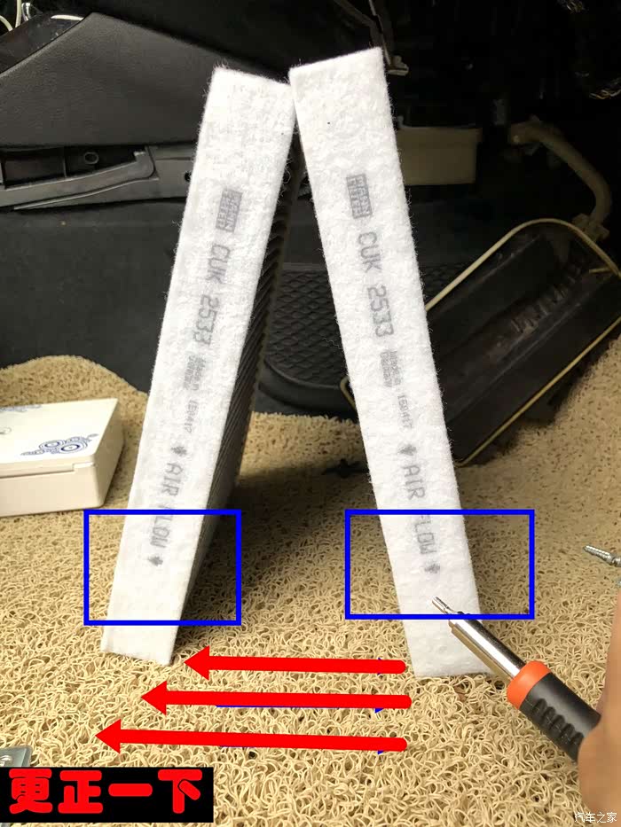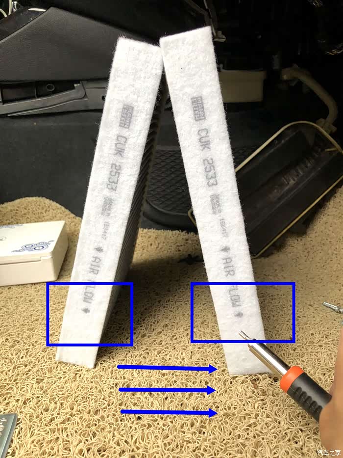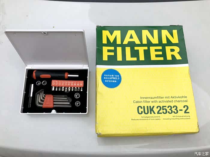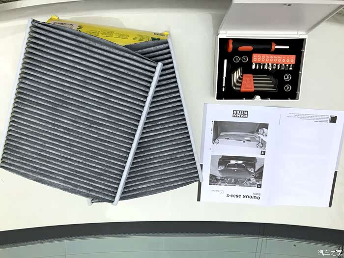 哈哈,那左边的工具也是BMW的小配件的,F18的523LI的机型是两片的滤芯。能够有效地过滤进出气。
