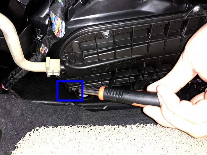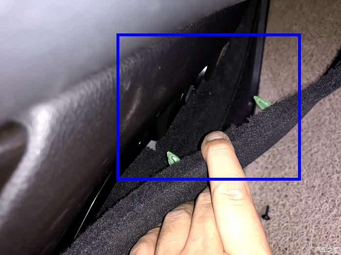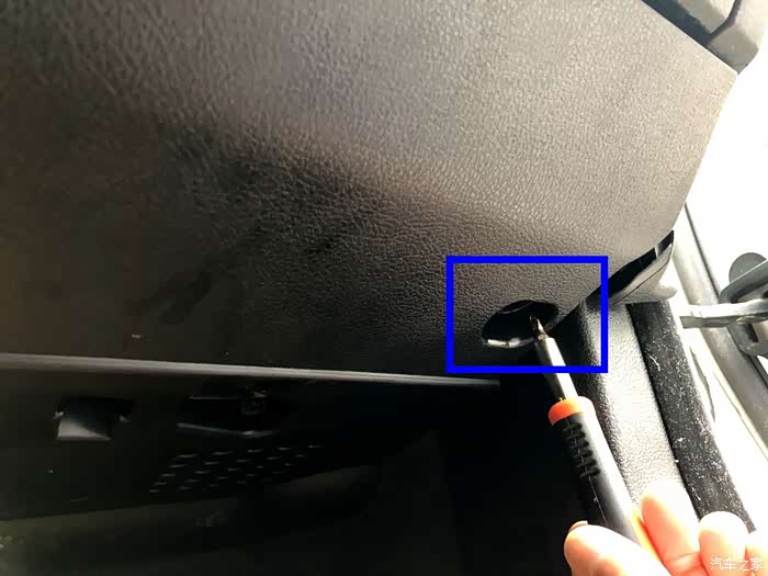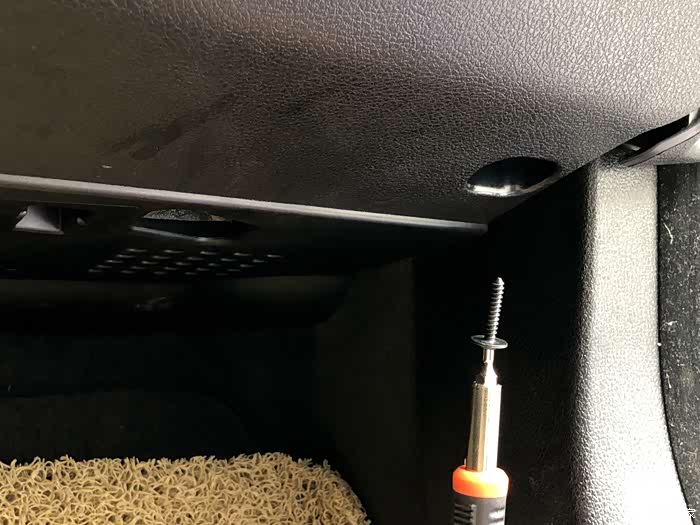 手套箱子的下方有两个十字螺母需要拆卸。左边一个右边一个!