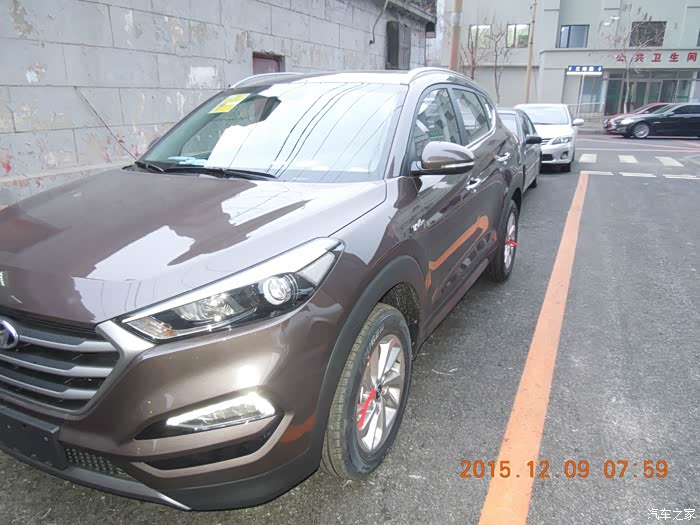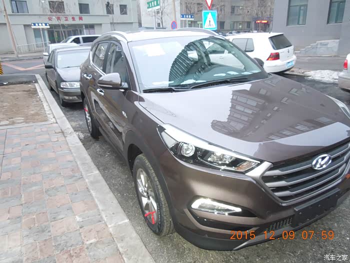 于是找熟人。到4s店准备买车。因为销售经理是哥们,当时就劝我,“哥,IX35这车降价之后是国产发动机,还有你肯定会觉得动力不行。新途胜这车新上市的,无论是动力、底盘、操控、油耗、技术超过IX35太多,ix35是2010年的车,已经在走下坡路了,IX35没有导航,4s店加装要2800,还不是原厂的。而且途胜购置税减半,2车最后全下来才差1.3万。20万都花了,还差这点吗!” 我还在犹豫,媳妇当场就拍板了,就它了!再一次感脚还得是亲媳妇呀……(此处省略2万字)。1.6t智能版,外棕内黑,现车,17.99万,优惠6000,该送的全送。一点作业都没做,连配置都不了解就交定钱了,直接无语。总有被忽悠的赶脚。但当时看见新途胜和IX35放在一起,真的是完胜,甚至比新胜达都漂亮!