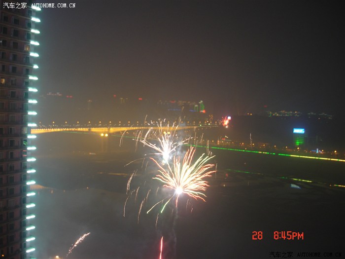 已到开始放烟火咯!整个嘉陵江的上空被绚丽的烟火照亮!