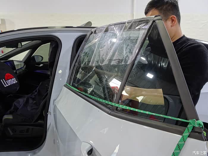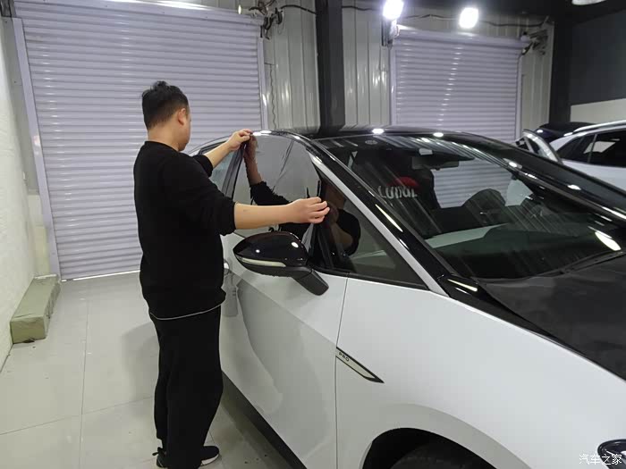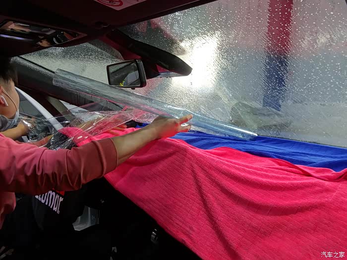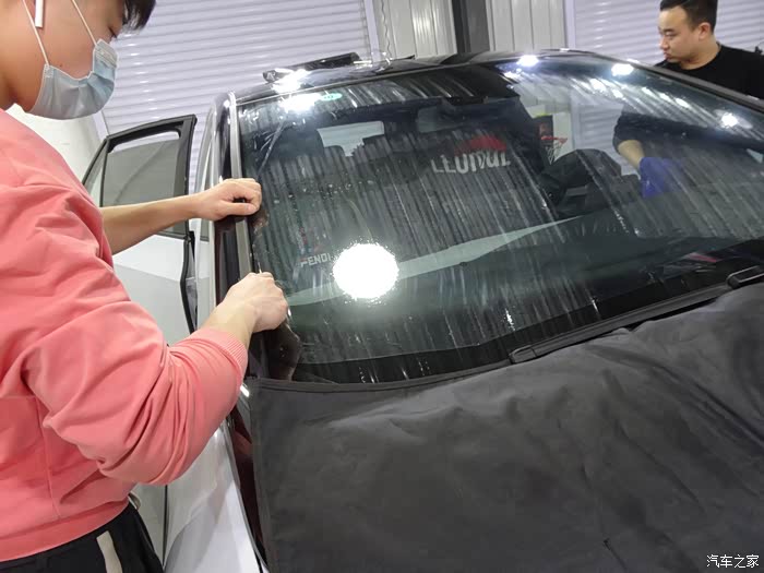 新车第一项大动作就是贴膜了,当然要贴好的膜了,原厂膜贴起来,而且是全车,前档也要贴一下子的,毕竟是玻璃天幕,不能打开,能尽量隔热的尽量隔热才好。