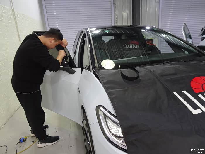 车辆进入贴膜车间了